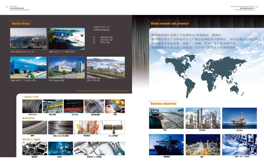 Hansun成立于1974年,是韩国老牌线材工厂。主要业务在韩国本土及欧洲市场,生产全品类的钢丝产品