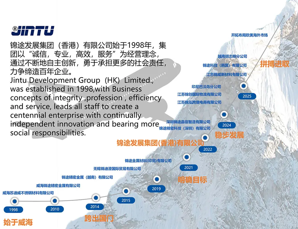 2010年9月,在中国威海成立威海锦途精密金属有限公司,建立了分条工厂,专业从事金属带材的纵剪加工及配送